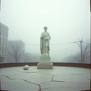 Sparse dissonant piano provides the backbone; a melancholic, reverberant trombone drifts through the space like a ghostly lament, Occasional low tuba underscores the darker phrases, adding a decaying, earthy resonance, Atmosphere is cinematic and oppressive, blending urban decay with spiritual exhaustion, Mood: philosophical, somber, fatalistic — a confession of human vanity and the inevitability of our return to the soil