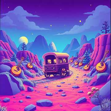 Upbeat fiddle tune at 150 BPM, backed by stomping digital kick and square-wave banjo imitations, Layers of harmonized 8-bit leads create the hoedown “party” atmosphere, with sudden breakdowns mimicking banjo solo spots, A triangle-wave bass stomps like boots on wooden floors, Feels like a subterranean barn dance