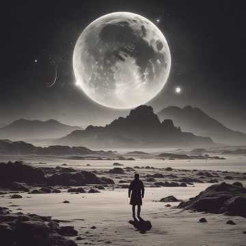 A slow, melancholic space western blues track with prominent layered synth wave pads that create a vast, cosmic atmosphere, Acoustic and slide guitar carry the western storytelling, supported by sparse drums and a promnent blues harp, lead harmonica, The tempo is unhurried, reflective, allowing space for every note to resonate like drifting through the void, Vocals are a deep, smoky male voice, conveying weariness, introspection, and quiet defiance, telling the story of a lone outlaw and bounty hunter with a dark past, living hard in the universe and reflecting on choices, freedom, and mortality, The synth pads are wide and layred and immersive, blending with western instruments to evoke both frontier dust and the endlessness of space, creating a feeling of melancholy, awe, and solitude