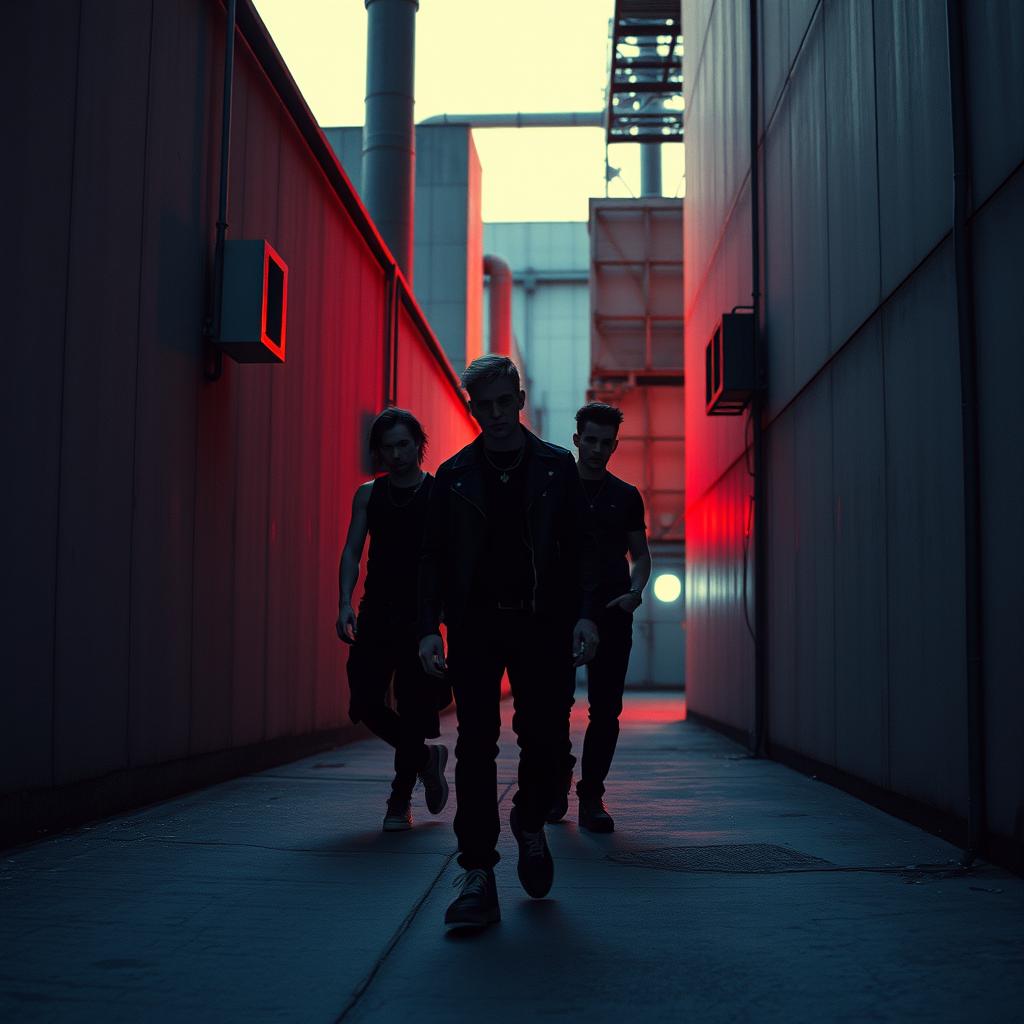 atmospheric textures with layered male vocals, future pop; driving electronic beats, synth melodies, darkwave, industrial, arpeggiator pulsing, rhythmic, Clipping, Pumping, Dark Electronic, Dark, Rhythmic, Synth Bass, Analog Overdrive, Saturation, Compression, Clipping, Pumping, Gritty Texture, Analog Synths, Dramatic, Cinematic, heavy bass, strong beat