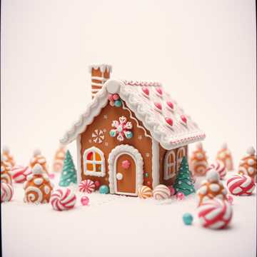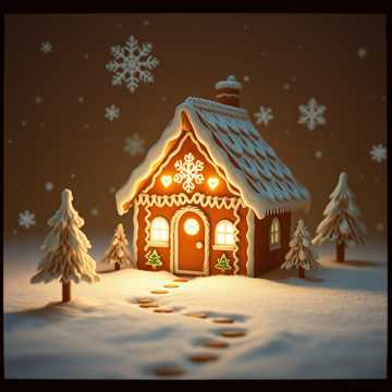 Gingerbread house, peppermint bark, hot cocoa, snowflakes, icicles, twinkling lights
