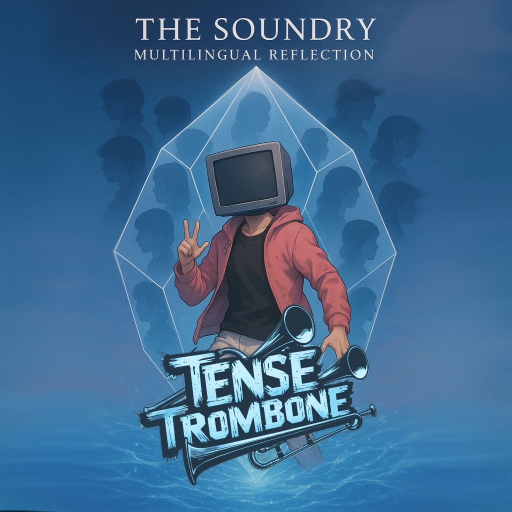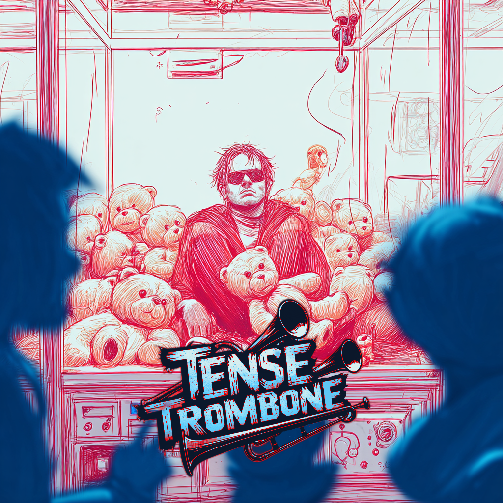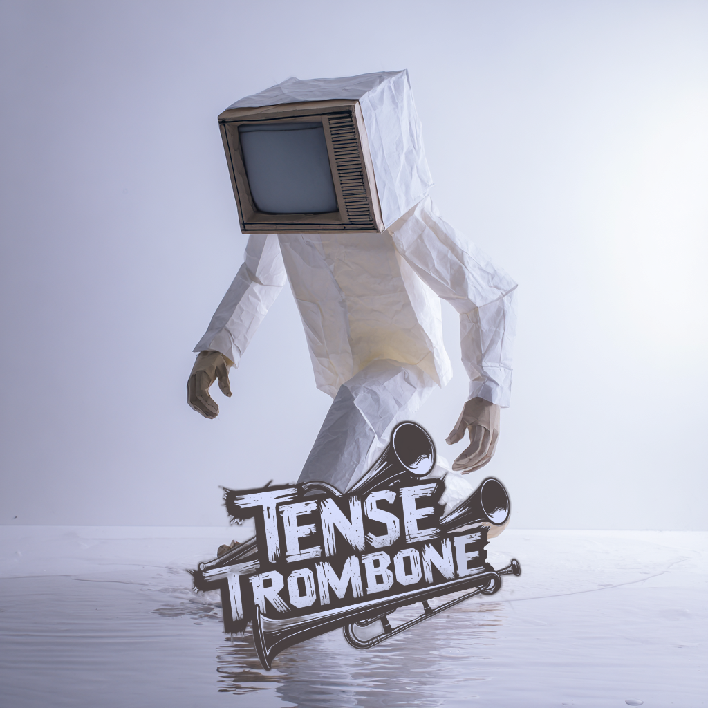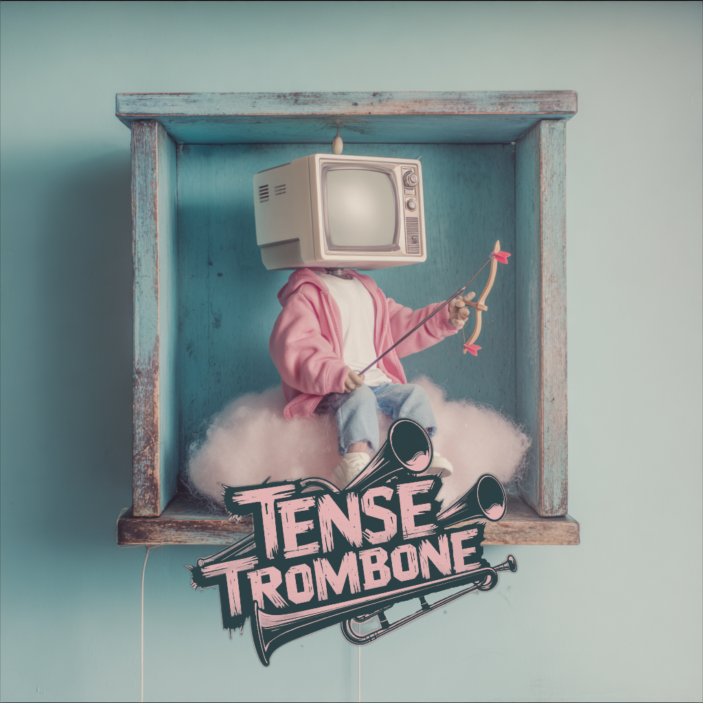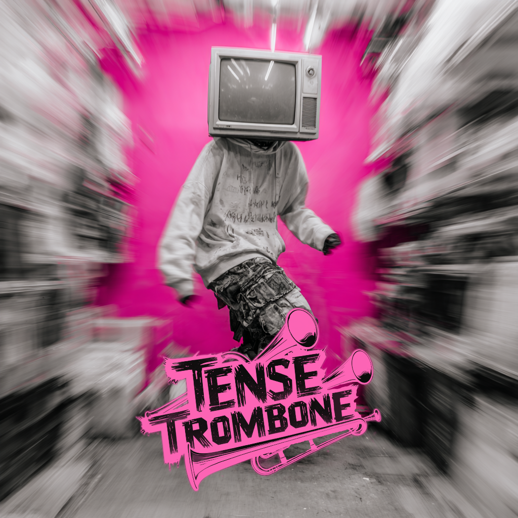 Crisp high fidelity studio production, Crisp vocals, and crisp high fidelity instrumentation, A post-punk revival, experimental indietronica track featuring punchy, angular guitars alongside skittering synth textures, Acoustic punk folk hooks interject, adding quirky contrast to soaring, reverb-laden trombone riffs, The rhythm section constantly shifts—syncopated basslines and driving, evolving percussion fuel the song’s momentum, while melancholic, dynamic male vocals cut through with bittersweet, ironic clarity