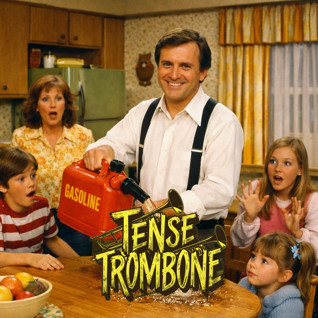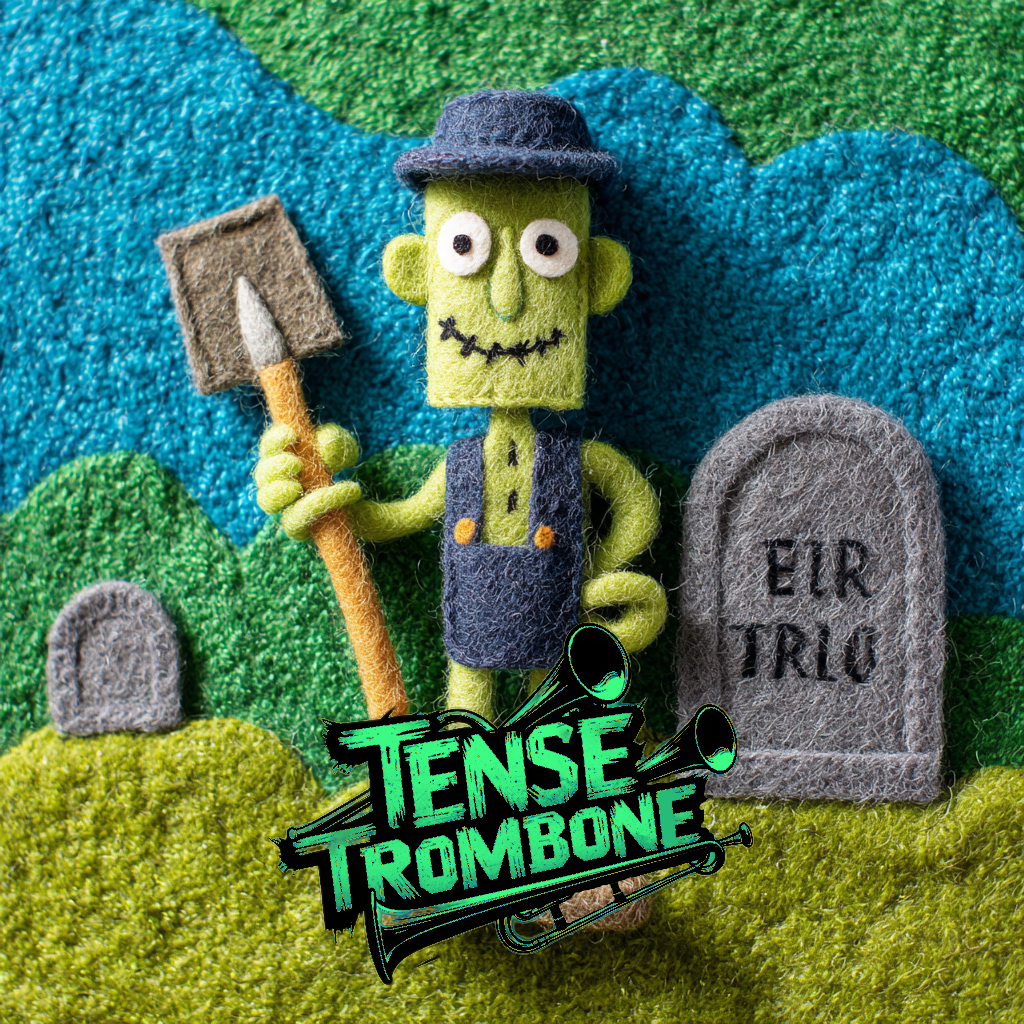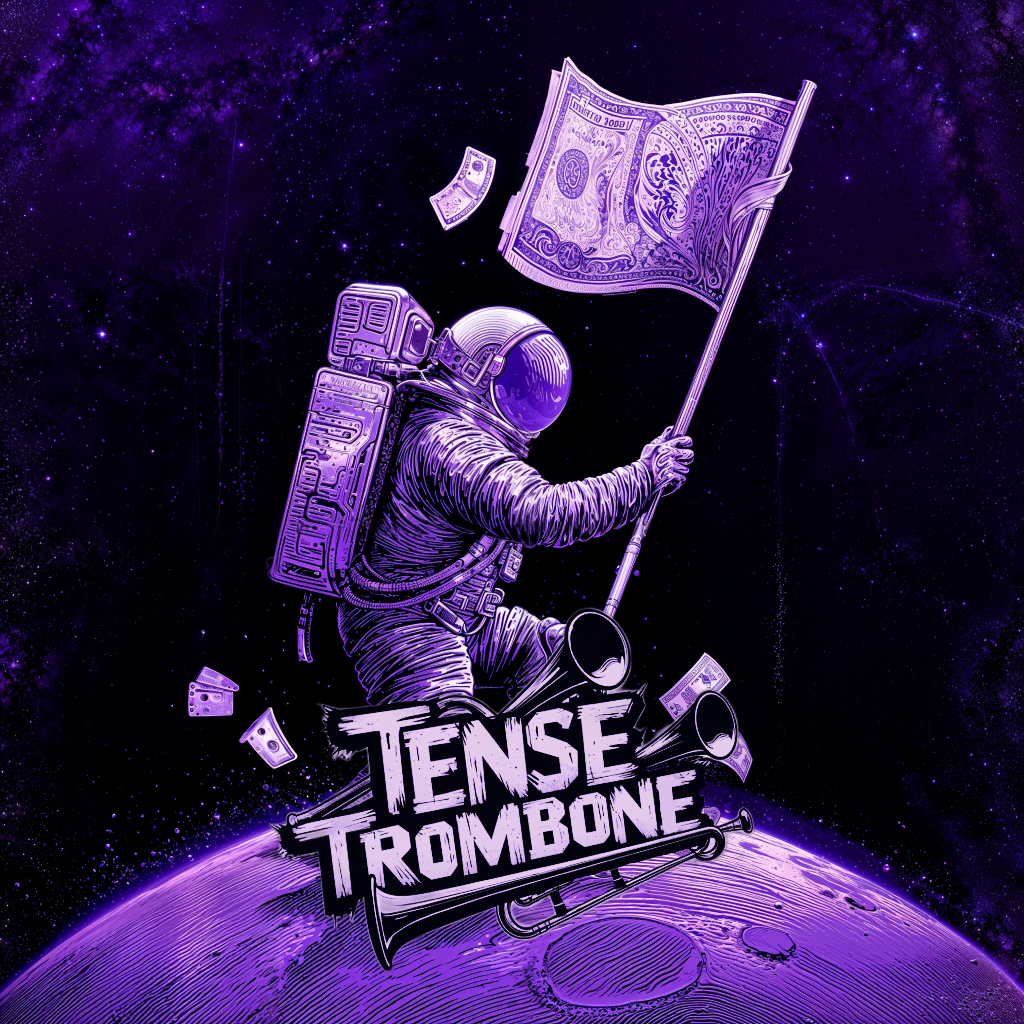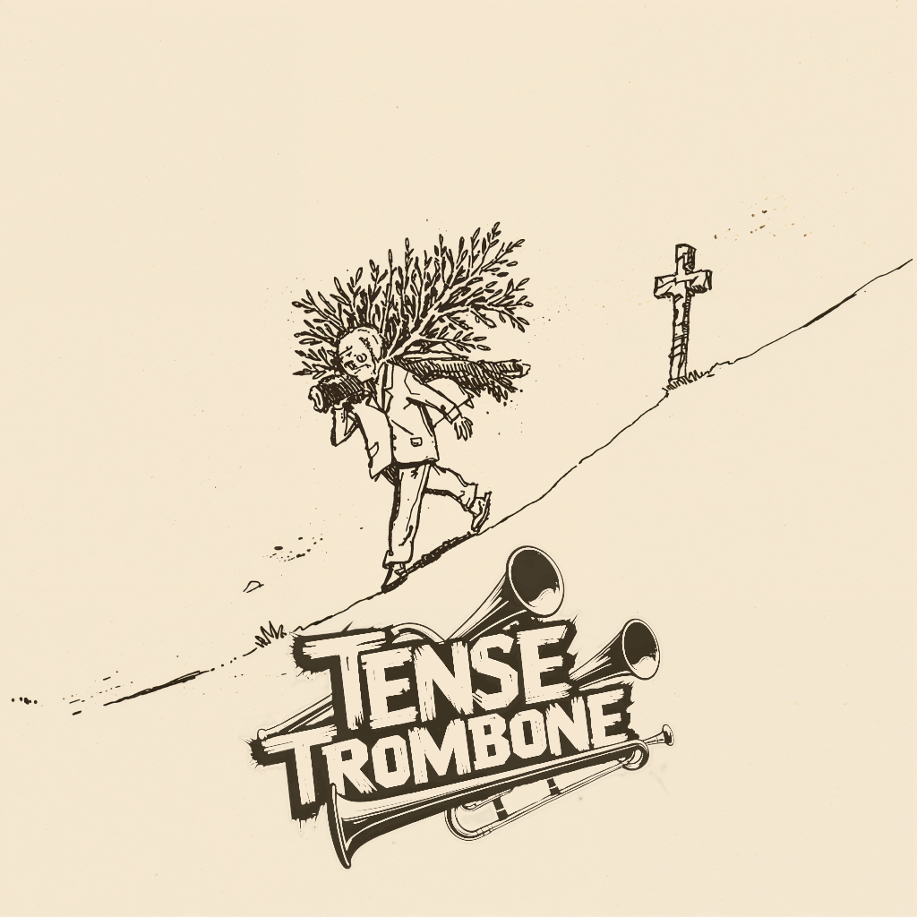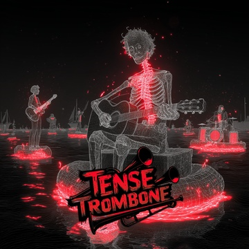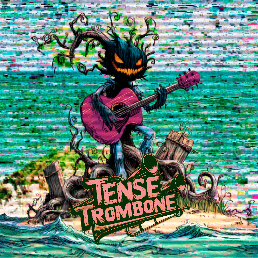 Crisp high fidelity studio production, Crisp vocals, and crisp high fidelity instrumentation, A post-punk revival, experimental indietronica track featuring punchy, angular guitars alongside skittering synth textures, Acoustic punk folk hooks interject, adding quirky contrast to soaring, reverb-laden trombone riffs, The rhythm section constantly shifts—syncopated basslines and driving, evolving percussion fuel the song’s momentum, while melancholic, dynamic male vocals cut through with bittersweet, ironic clarity