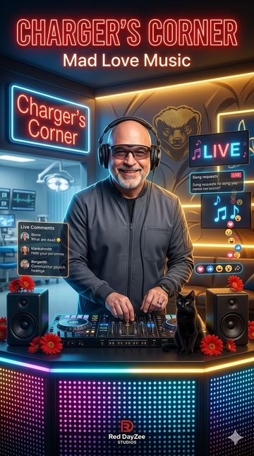 “Charger’s Corner” is a one-minute TikTok LIVE anthem inspired by charger1088 — a battle-tested healthcare veteran turned trusted room host, With 18 years in nursing across ER, trauma, and psych, he brings a rare blend of authority, humor, calm energy, and real-life wisdom to his streams, The song blends uplifting hip-hop drums, smooth DJ textures, warm synth bass, subtle turntable effects, and crowd-energy transitions, Lyrically it references his LIVE format: DJing, taking song requests, commentary, and creating a room where people decompress after hard days, It also honors the real moment where Honey Badger invited the user into Charger’s room and he played the user’s song live, helping reignite momentum during a funk, This one-minute version is built for LIVE intros, room openings, replay loops, creator edits, and community pride