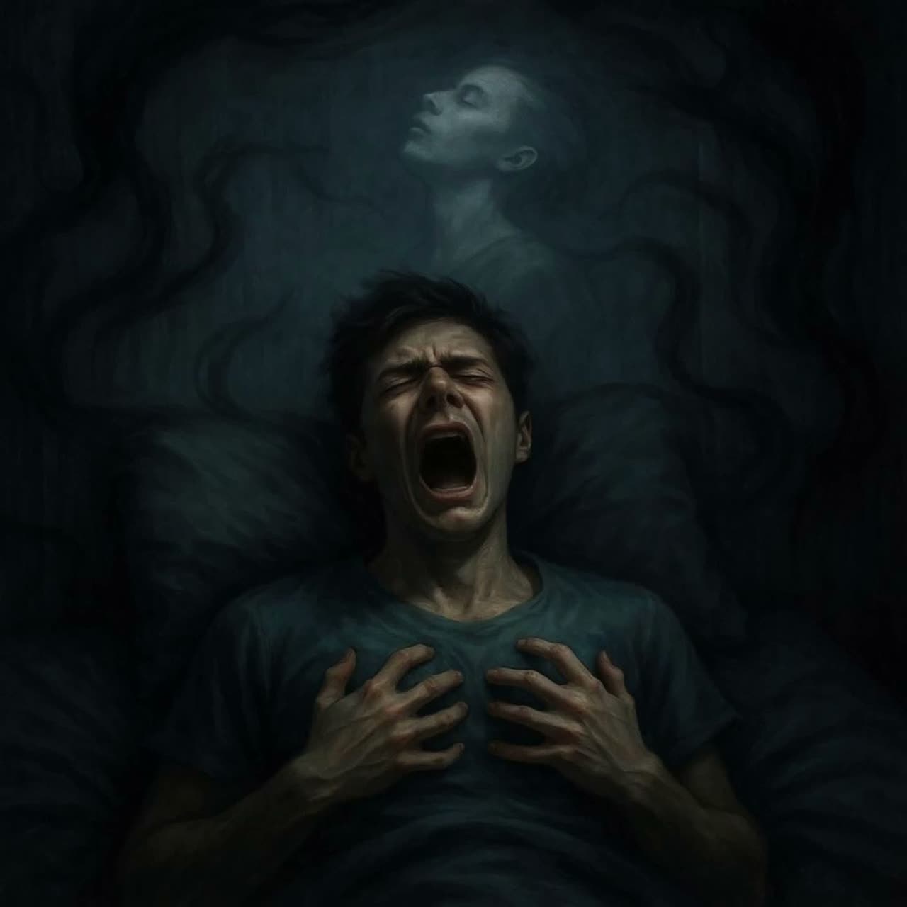 Opening with hazy pads and distant ambient textures, the song introduces darkwave-inspired synth bass and spectral, echoing percussion, Ethereal, layered vocals drift across lush electronic swells, while subtle cinematic strings heighten tension, The arrangement slowly builds with haunting arpeggios, granular atmospheres, and processed guitar lines, immersing the listener in a surreal, inescapable dreamstate, ‑Hip Hop, ‑Country, ‑Jazz, ‑Reggaeton, ‑Punk Rock