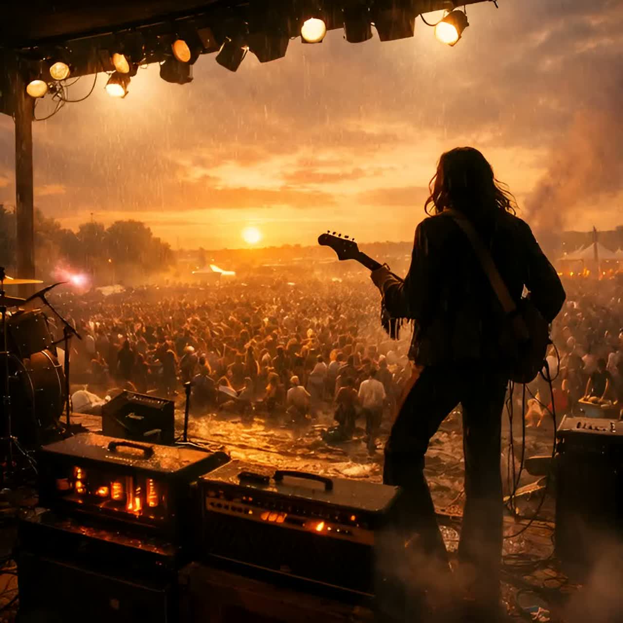 A live festival-driven rock anthem with warm tube amp saturation, loose yet powerful drums, Hammond-style organ swells, gritty blues guitar riffs, and extended psychedelic solos, Vocals are raw, communal, and emotionally charged, with gang harmonies in the chorus, The mix should feel open-air and human — dynamic, spacious, slightly imperfect but electrifying, capturing the communal chaos and transcendence of a massive outdoor performance, ‑EDM, ‑Trap, ‑Hyperpop, ‑Dubstep, ‑Metalcore, ‑Orchestral, ‑Techno, ‑Industrial