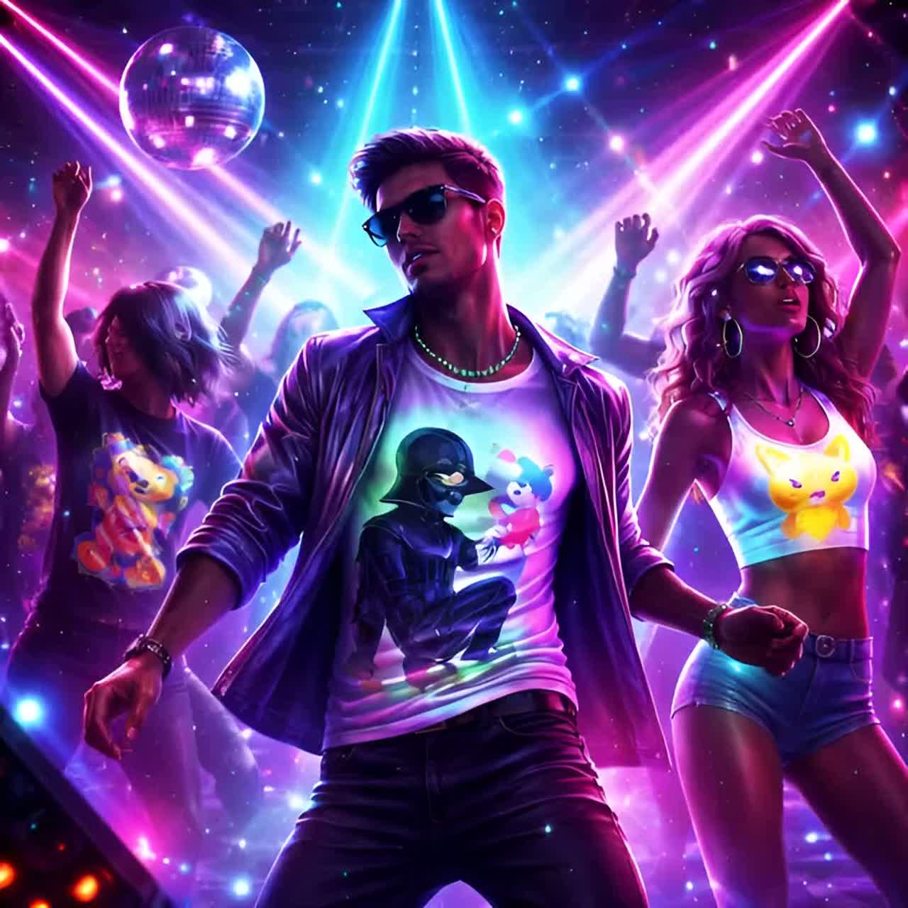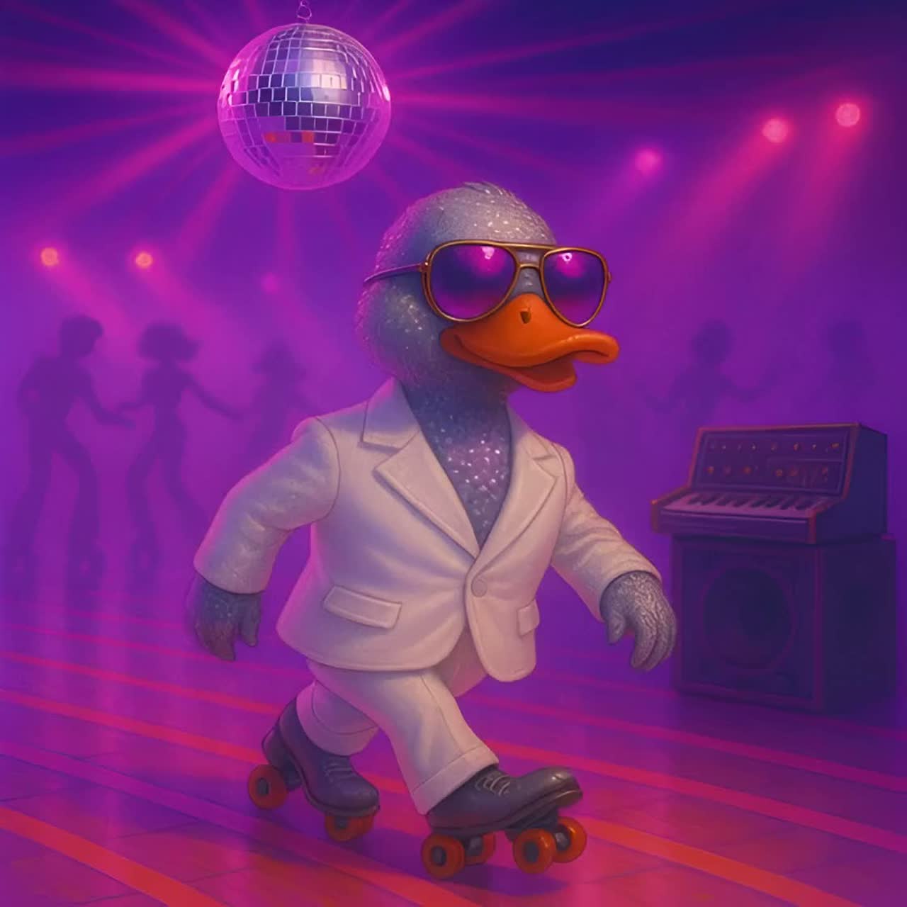 A glitter-drenched blend of late-70s disco and early-80s theatrical synth pop, Funk guitars, slap bass, four-on-the-floor drums, and shimmering strings create a danceable retro fantasy, The song leans into camp and character, with a strut-heavy beat and dramatic vocal flair, like a soundtrack to a roller-rink fever dream, Cartoonish vocal inflections and vocoder-style effects add novelty sparkle without losing groove authority, ‑Trap, ‑Metal, ‑Jazz Fusion, ‑Screamo, ‑Lo-fi, ‑Minimal Techno