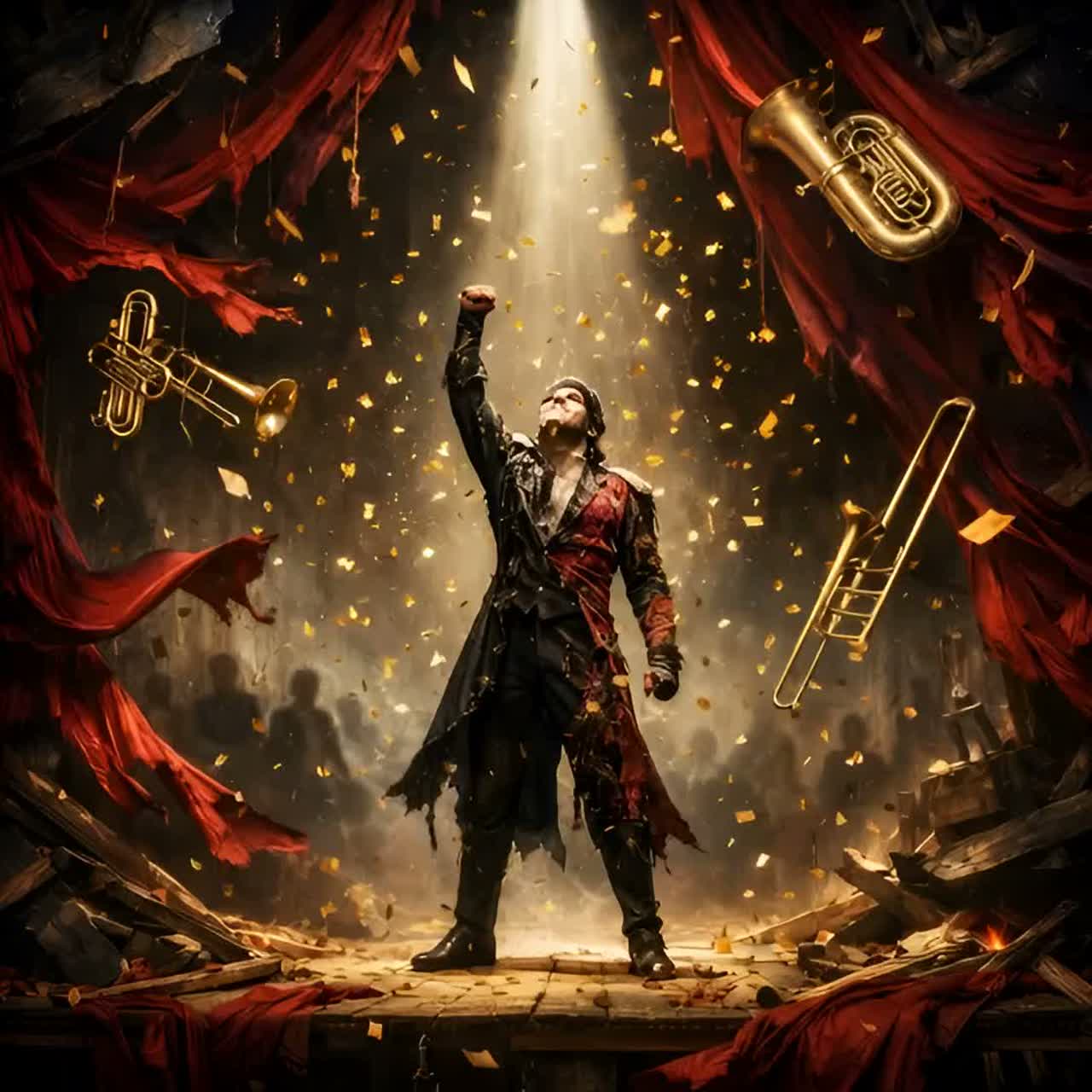 A wildly theatrical genre blend that merges the expressive flair of Broadway with the punch of pop-rock and lush orchestral instrumentation, Expect dramatic swells, syncopated funk rhythms, cheeky clarinet runs, grand brass hits, and moments of sweeping string romance — all choreographed with the pacing of a scene-stealing musical number, Designed for energetic live instrumentation, comedic flair, and theatrical finesse, ‑Trap, ‑Lofi, ‑Sadcore, ‑Hyperpop, ‑Chillwave, ‑Shoegaze