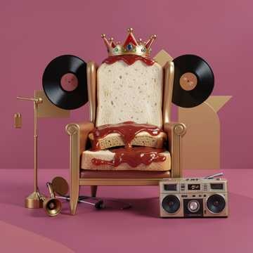 jazz rap, boom bap, 94 BPM, swung 16th groove, punchy rimshot snare, upright bass plucks, brushed drum kit, muted trumpet riffs, string quartet stabs, vibraphone chords, turntable cuts, speaker-reactive fx, mono vocal delay, tape saturation, comic spoken word, playful braggadocio, hook-heavy refrains, late 90s mix, dry room sound, voice overs, left-field satire