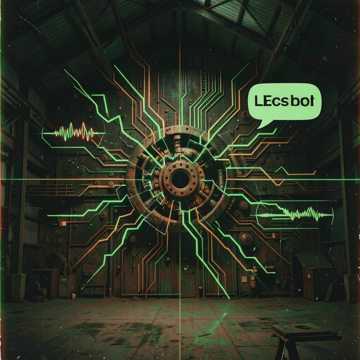 industrial hip-hop, glitch-hop, 100 BPM, E minor, distorted synth bass, overdriven percussion, clipped snare, rapid glitch hats, rhythmic record scratches, pitch shifted vocal chop, granular synthesis, tape stop effects, heavy DJ cuts, syncopated industrial loop, resonant filter sweeps, hard stop breaks, dubwise bass drops, boom bap drum swing, call and response horn stabs, tape saturation