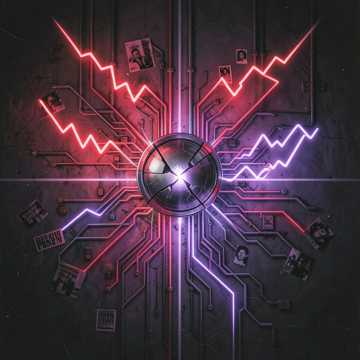 Opens with glitchy, minimalist hip-hop—distorted, urgent bassline, metallic clicks, fractured samples; rapid conversational raps, dry and pushed to the front, treated with pitch-shifting and stutter FX at key lines, Abruptly erupts into a blistering death metal breakdown: pounding double-kick, savage guitars, and guttural vocals, climaxing in layered chaos before a jarring, abrupt end
