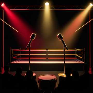 A lively and humorous talk-show style segment featuring two male speakers with energetic, conversational vocal qualities, The audio is characterized by a clear, studio-quality recording with minimal background noise, typical of a professional podcast or radio broadcast, The pacing is fast and rhythmic, driven by the natural cadence of the speakers' dialogue, Occasional laughter and interjections from a third person add to the spontaneous, live-audience feel, The segment concludes with a brief burst of applause and cheering, followed by a transition into further commentary, The overall production is clean, with well-balanced levels and a focus on vocal clarity