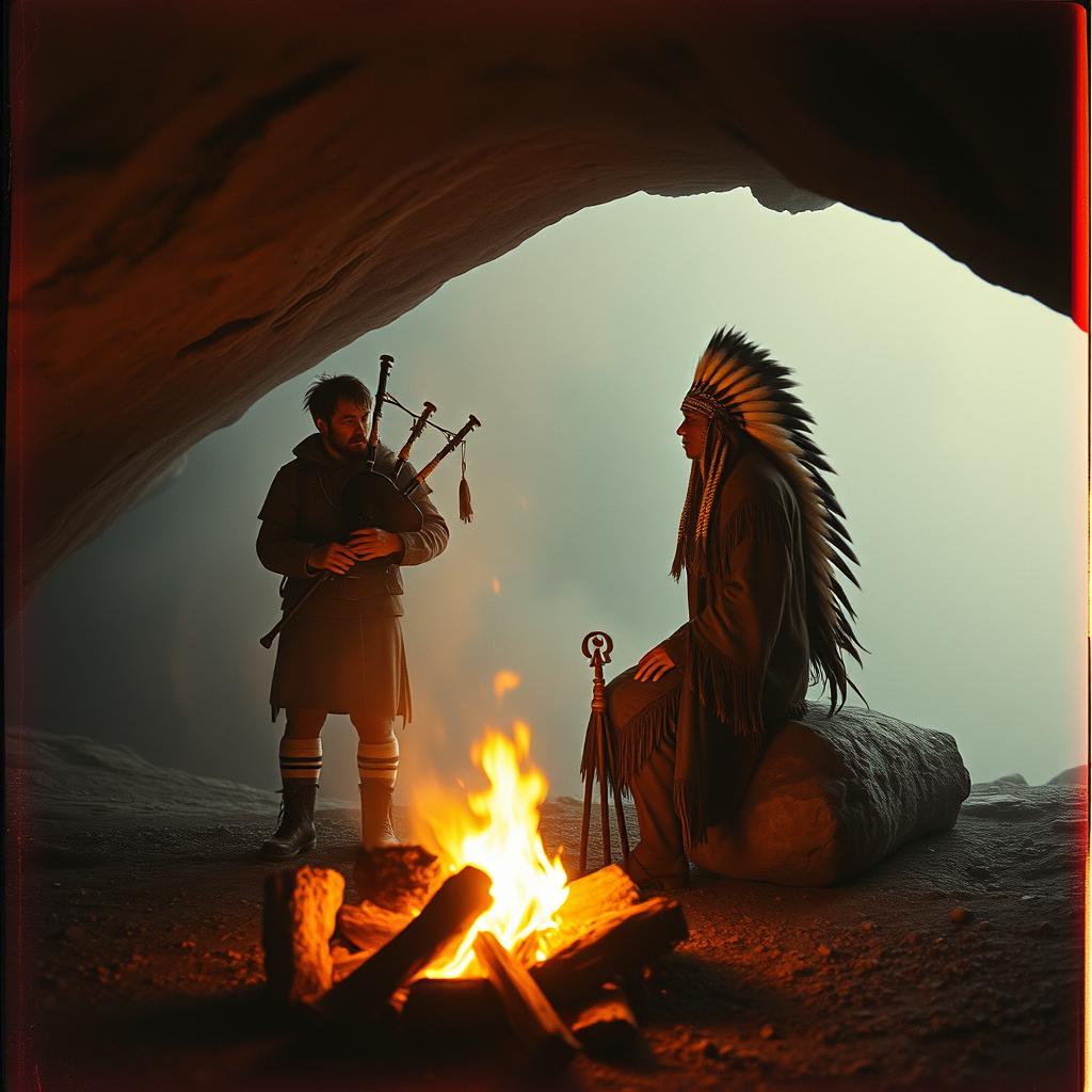 traditional Scottish bagpipes and drums layered with trance beats, blending traditional and modern textures for an anthemic, creating a cinematic and transcendent feel, emotional journey, deep basslines drive the rhythm, trance, while soaring synths echo the bagpipe melodies, male vocals and cries of females