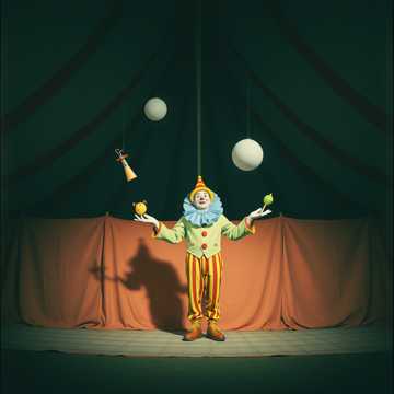 funny, twist atmosphere, slow 6 1 tempo, 4 3 bpm, drift-phonk, story, gloomy, ambience, clown, soulful male vocals, basse profonde