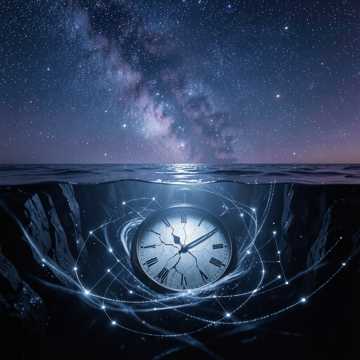 Expansive oceanic space-prog with deep thematic gravity, blending cosmic melancholy, philosophical urgency, and immersive long-form storytelling, Slow-burning progressive rock with luminous analog synths, glassy electric piano, expressive sustained lead guitar, fluid bass, patient tom-driven drums, and wide cinematic dynamics, The mood should feel like standing between a dark sea and an infinite sky, caught between memory, warning, and revelation, Vocals should be emotive, reflective, and slightly haunted, with a dramatic but natural delivery that moves from intimate contemplation to prophetic lift, The arrangement should evolve in distinct phases, with recurring melodic motifs, atmospheric instrumental passages, tension-building transitions, and cathartic surges, Include both oceanic and cosmic imagery, a sense of time slipping and folding, and a message of awakening, return, and moral turning before it is too late, Richly melodic, spacious, philosophical, eerie, ‑metal, ‑pop, ‑trap, ‑edm, ‑country
