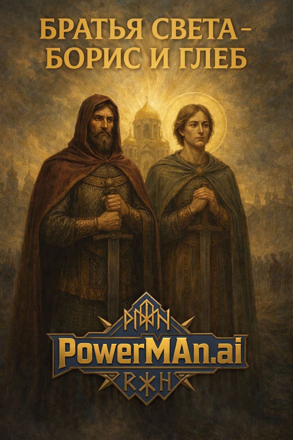 Orthodox symphonic rock ballad, sacred and solemn atmosphere, deep emotional male lead vocal, Orthodox church choir, church bells, pipe organ, symphonic strings, electric guitar, cinematic drums, slow dramatic build, prayerful and majestic mood, ancient Rus, holy light, martyrdom, spiritual sacrifice, Boris and Gleb as the first canonized saints of Rus, canonization in 1072, mournful intro, powerful choral climax, epic final chorus, reverent historical feeling, no foreign lyrics, only Russian text, clear separation of quiet prayer sections, orchestral rises, choir background, and strong final resolution