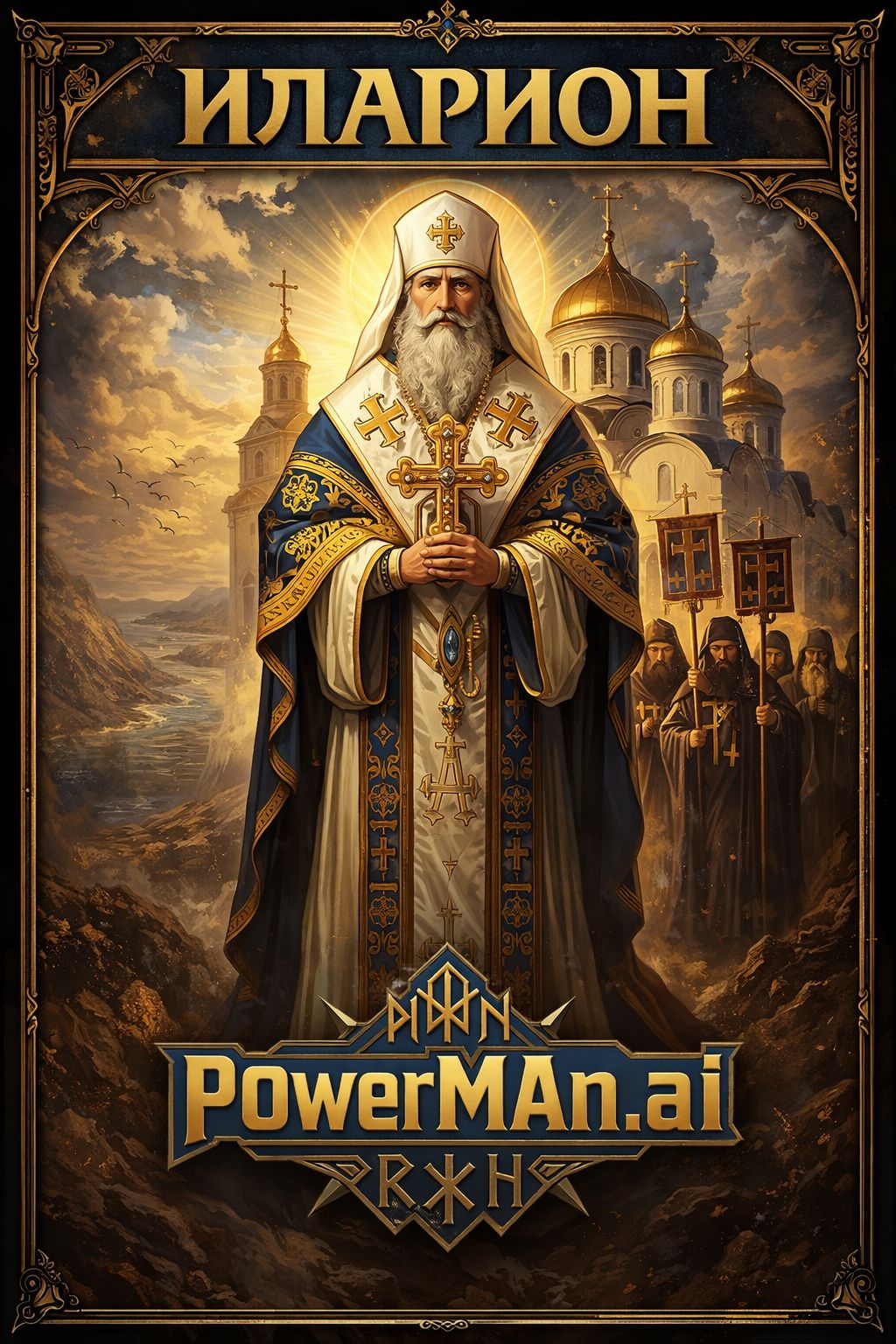 Instruments: church bells, male solo vocal, mixed Orthodox choir (male & female), orchestral strings, grand piano, electric guitar with soft distortion, bass, live drums, pipe organ, Structure: intro – verse 1 – chorus – verse 2 – chorus – instrumental – verse 3 – chorus – bridge – final chorus – outro, Mood: majestic, sacred, spiritual triumph; emotional, solemn, uplifting, Theme: The first Russian Metropolitan, Hilarion, chosen in 1051 without the approval of Constantinople, A hymn to spiritual independence and the rising soul of the Christian Rus’, Language: Russian