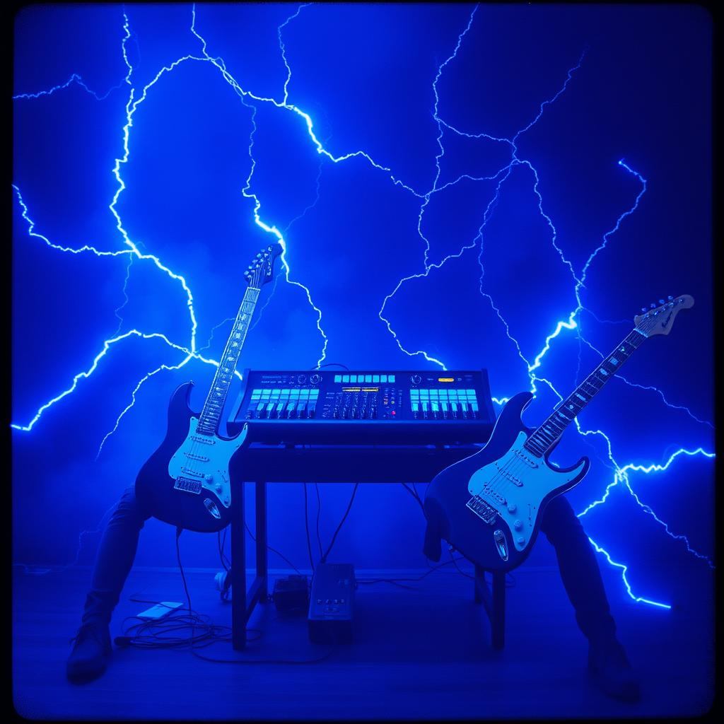 The song bursts in with driving FM chiptune arpeggios layered over punchy 16BIT drums, joined by soaring, anthemic melodic 80s metal twin lead guitars in harmonies, Shifts from energetic riffs to a melancholic, emotional twin lead guitar solo, soaring bridge before roaring back to an emotional, epic finale