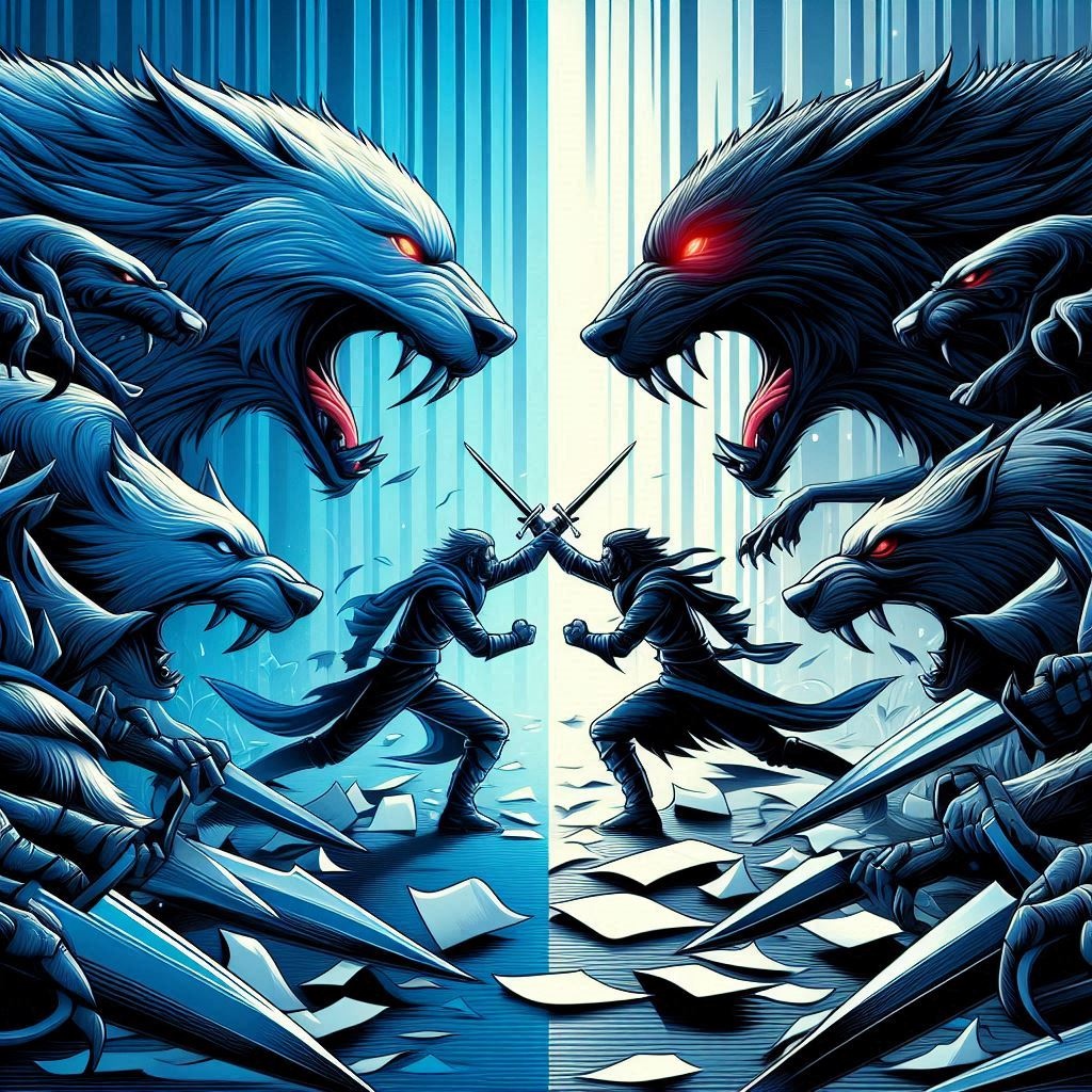 An extremely hot, passionate, and anthemic Hard Rock instrumental filled with burning energy and emotional intensity, The twin-solid shred electric guitars are the centerpiece—expressive, soaring, and Aggressive, The track begins with an explosive guitar introduction where two guitars immediately launch into a fast, intense duel of rapid-fire phrases and technical runs, trading lines in a fiery guitar battle, Their conversation should feel competitive yet harmonious, overflowing with emotion and precision, As the solo progresses, the two guitars build tension through alternating leads, arpeggios, and screaming bends, finally merging into a powerful harmonized climax, The melody throughout the song should remain catchy, anthemic, and dramatic, radiating pure heat and determination, An style synth using a warm super saw lead tone should weave around the guitars, enhancing the melody with fast passages, creating a sense of motion and euphoria