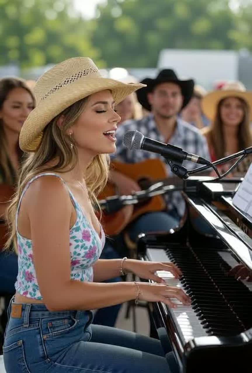 country ballad** with gentle guitar picking/strumming in mind, piano, live concert feeling, female vocal