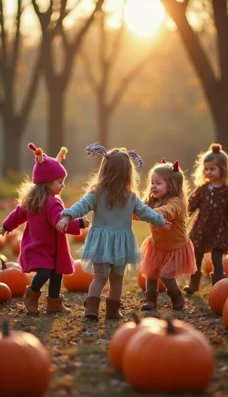 Theme: A mom at a pumpkin patch watches her four little girls do everything except pick pumpkins while she threatens to “call the monsters” if they don’t behave