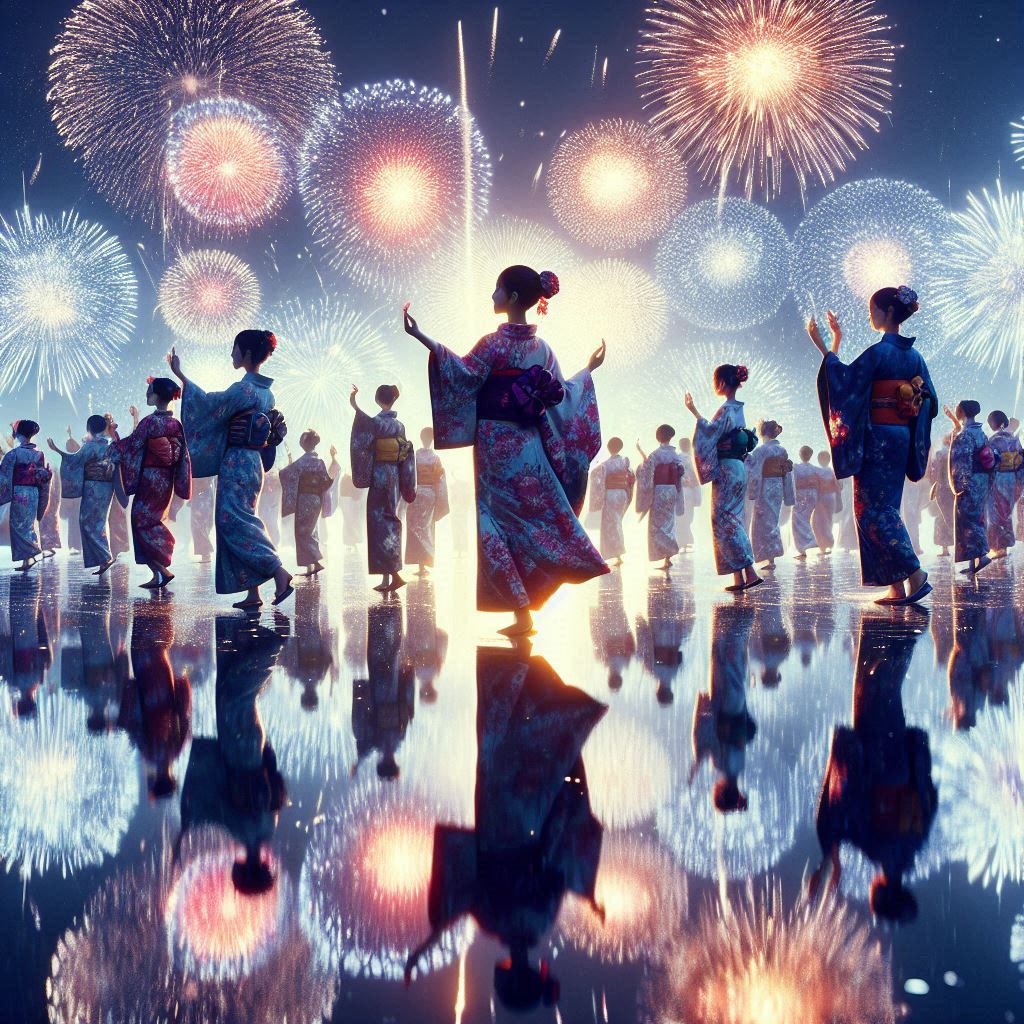 Fireworks, Gagaku instruments, Japanese traditional instruments, Kagura, festival sounds, dance, Japanese festivals, explosion sounds, big explosions