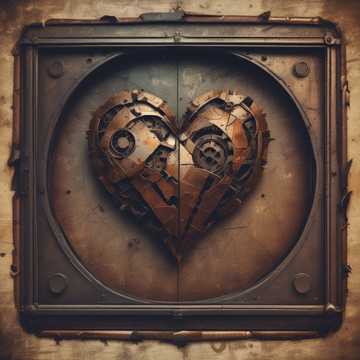 Dark synthwave with industrial influences, driving, gritty synth bass, metallic arpeggios, robotic vocoder, eerie
