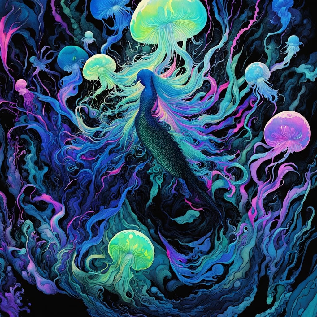 EDM Glitch, Glitch cloud rap, hip hop, creepy, Synth-heavy beats, Smooth bass lines, passionate chilling expressive vocals, creepy female singer