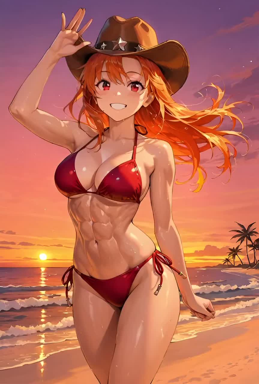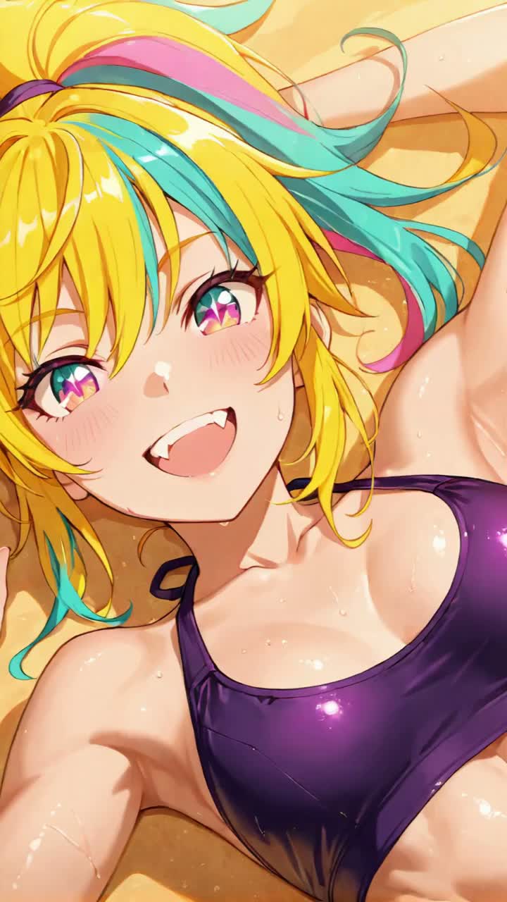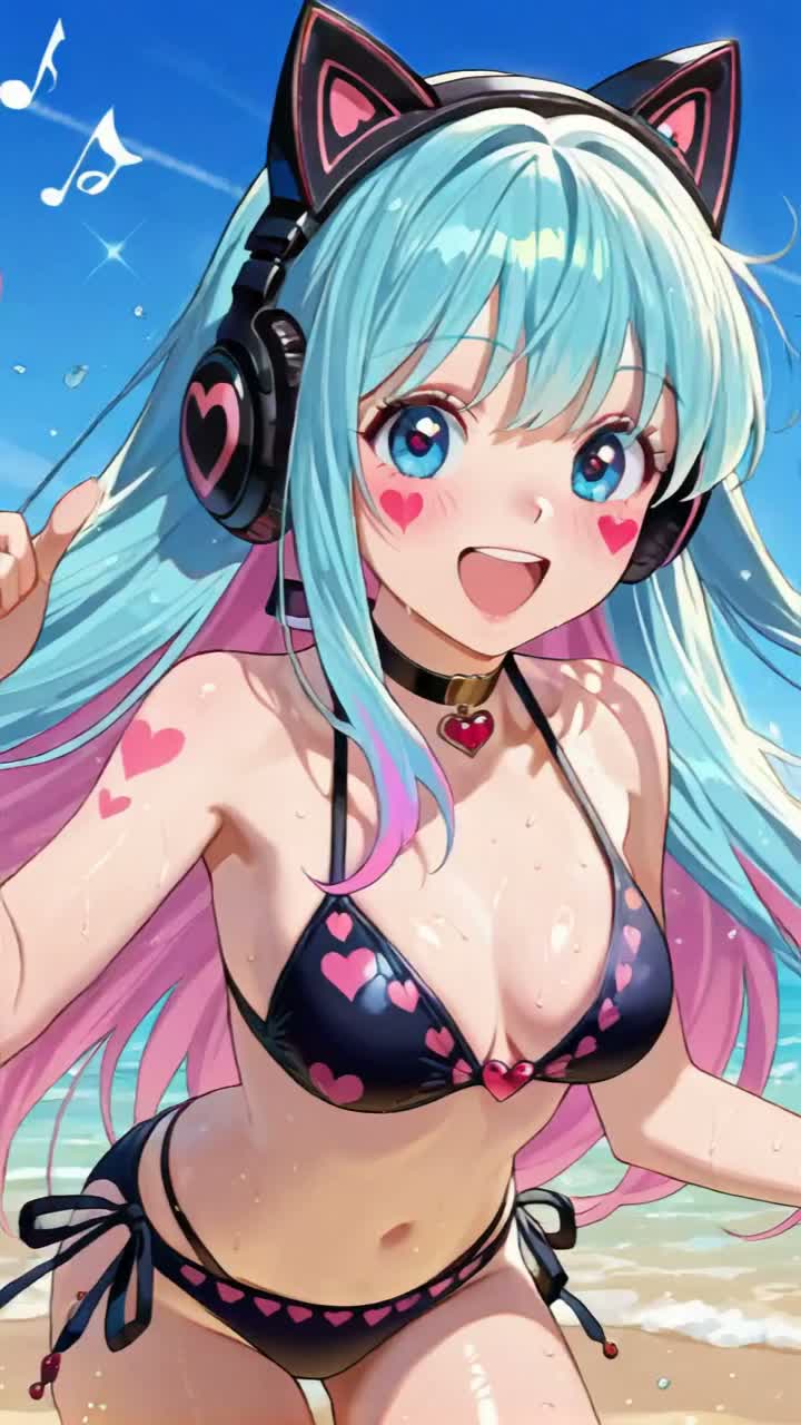 reggae, beach vibes, summer party, tropical groove, bright guitar, deep bassline, upbeat percussion, vibrant and joyful atmosphere, anime-inspired energy, Energetic cute female voice, idol-style performance, bright and cheerful tone, kawaii J-pop with reggae groove