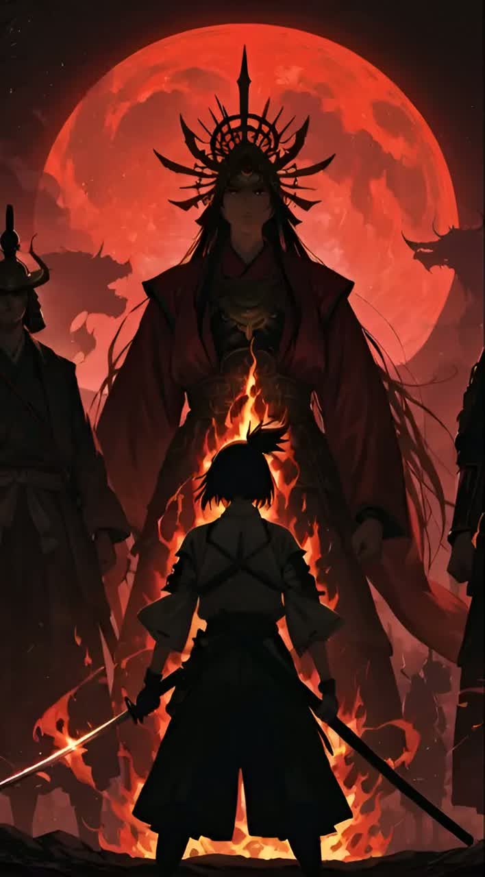 - Bass Guitar Solo intro: distorted low growl, sliding ominous tone, - Electric guitars: sharp tremolo riffs, chugging rhythms, reverb, - Guitar solos: fast shredding, sweep picking, chaotic, - Drums: blast beats, double bass, polyrhythms, tempo shifts, - Japanese instruments (shamisen, shakuhachi, taiko) + symphonic layers, Tempo & Atmosphere:
