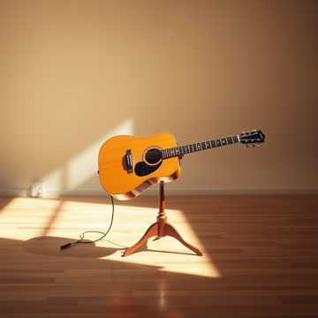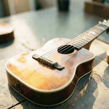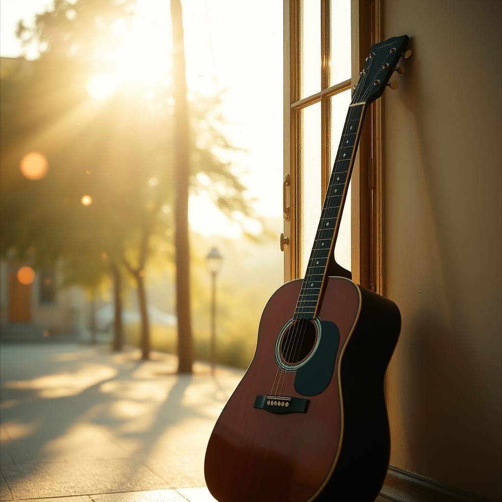 A fingerstyle guitar carries the melody with intricate picking, supported by subtle, warm bass lines, Light strings add depth and gentle harmonic pads, while delicate percussion—soft brushes and hand percussion—creates an intimate, textured backdrop without overpowering the guitar