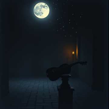 Classical guitar takes the lead with intricate fingerpicking and warm, resonant tones, Subtle orchestral strings and gentle woodwinds weave softly beneath, providing delicate harmonic support and gradual dynamic swells, with the arrangement keeping intimacy and elegance throughout