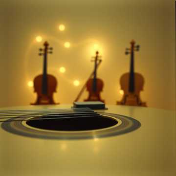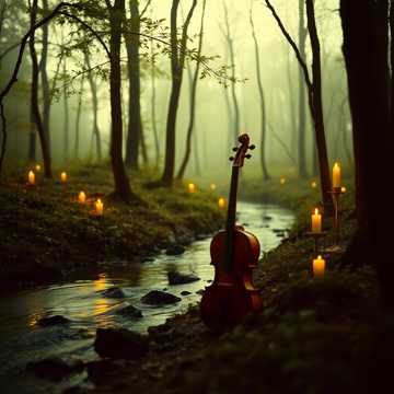 A delicate classical guitar leads with intricate fingerpicking, supported by understated strings—mainly violins and cellos—providing gentle harmonies and depth, The piece flows lyrically, with the orchestral voices weaving softly around the guitar, adding elegance and warmth