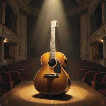 A classical guitar leads with expressive fingerpicking, its warm tone forefront, Subtle orchestral elements—soft strings, delicate woodwinds, and gentle brass—enter gradually, supporting the melody, Dynamics ebb and flow, giving the guitar prominence while the orchestra deepens the texture