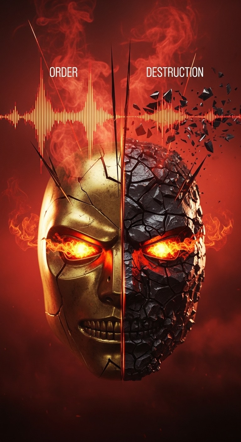 Aggressive Memphis-trap-meets-metalcore anthem, 150 BPM, halftime swing; dark cinematic intro with chopped vocal FX, metallic snare hits, and 808 growl, Baritone–tenor tradeoff delivery; stadium-crunk ad-libs with call-and-response energy, Intensity : 80–90 | Mood : 70–80 | Weirdness : 45–60