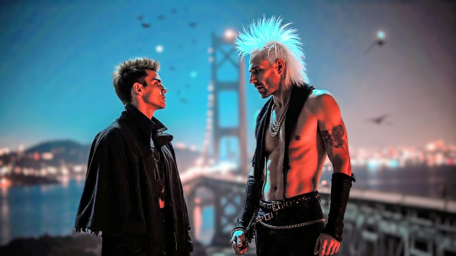experimental Post Punk with the guitars chords repeated catchy bass line synth, darksynthwave, 1982 analog palette, Minimoog bass ostinato, Juno-60 detuned chords, Prophet-5 glass lead, ARP 2600 glitch motifs, chorus-soaked guitar stabs, LinnDrum snare crack, gated plate reverb, tape saturation, cold nocturne, nocturnal chase, half-time groove, dotted-delay breaks, sparse breakdowns, 96 BPM ultra deep low male vocals, slow lyrics delivery, experimental, emotionless monotone male vocal, jaded lyrics delivery, sexy whispers, sexy Post Punk, catchy bass and good guitar rifts, 89bpm, underground, goth art, gay men sexuality, electro-drug, loud bass, ‑female vocals and female backing vocals, ‑too much emotion and intensity in the lyrics delivery, ‑HIgh pitched vocals