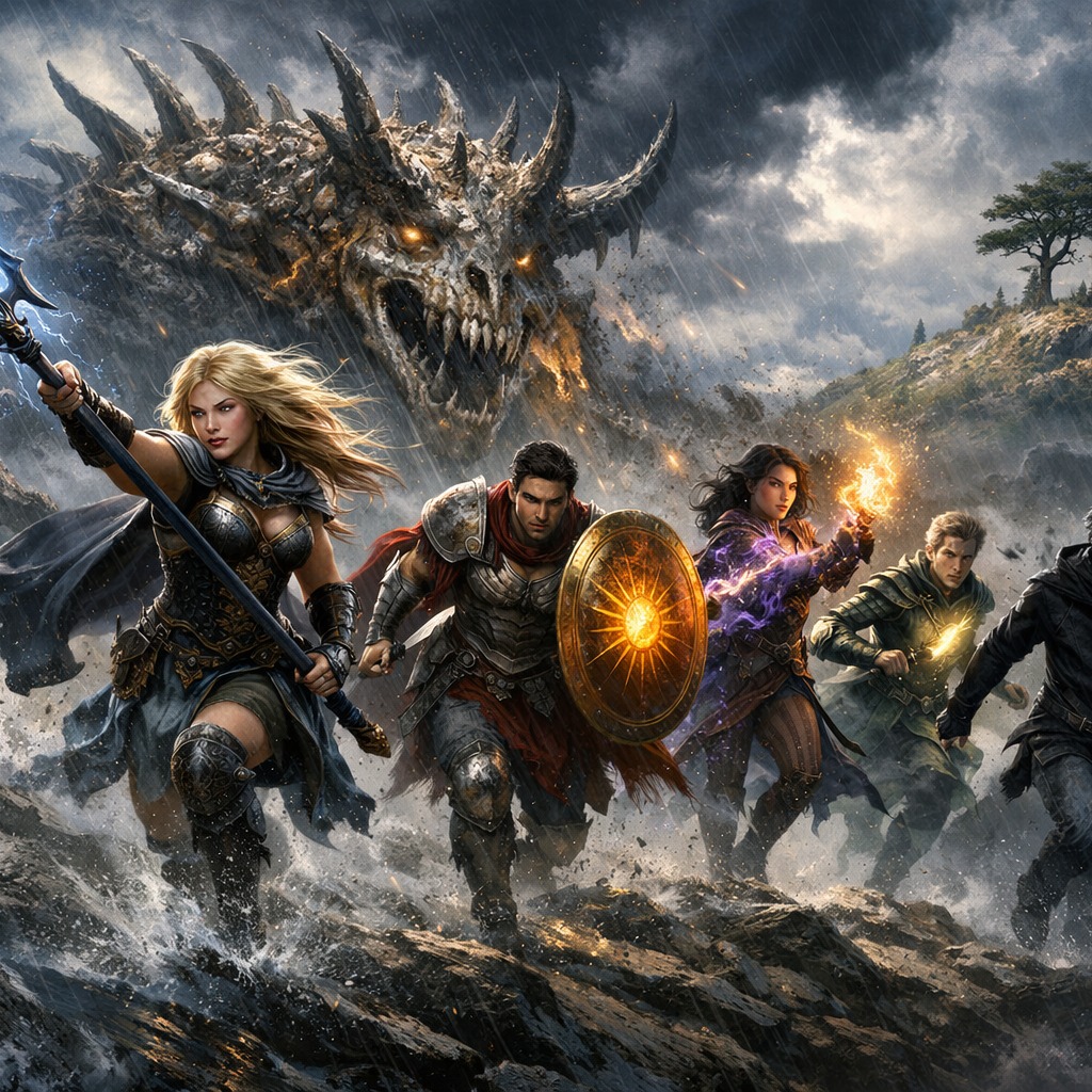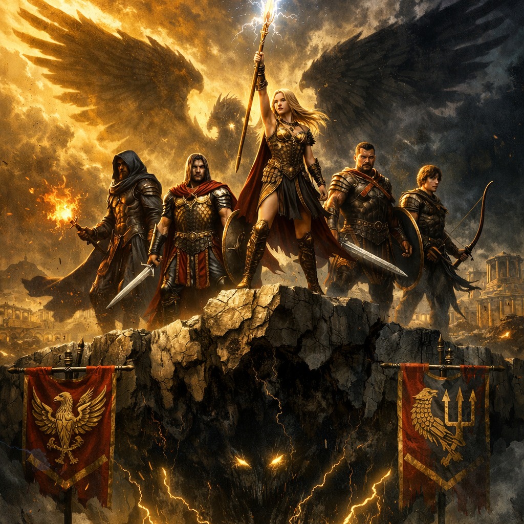 Fast, high-energy power metal with soaring clean male vocals, massive layered choirs, dual harmony lead guitars, galloping double-kick drums, triumphant yet tense minor key melodies, cinematic orchestral swells, dramatic pre-chorus build-ups, explosive stadium-sized chorus, ultra rast neoclassical shredding guitar solo, key change in final chorus, epic and heroic but with a sense of looming danger, ultra-polished production, catchy hook-driven songwriting, epic arpeggios