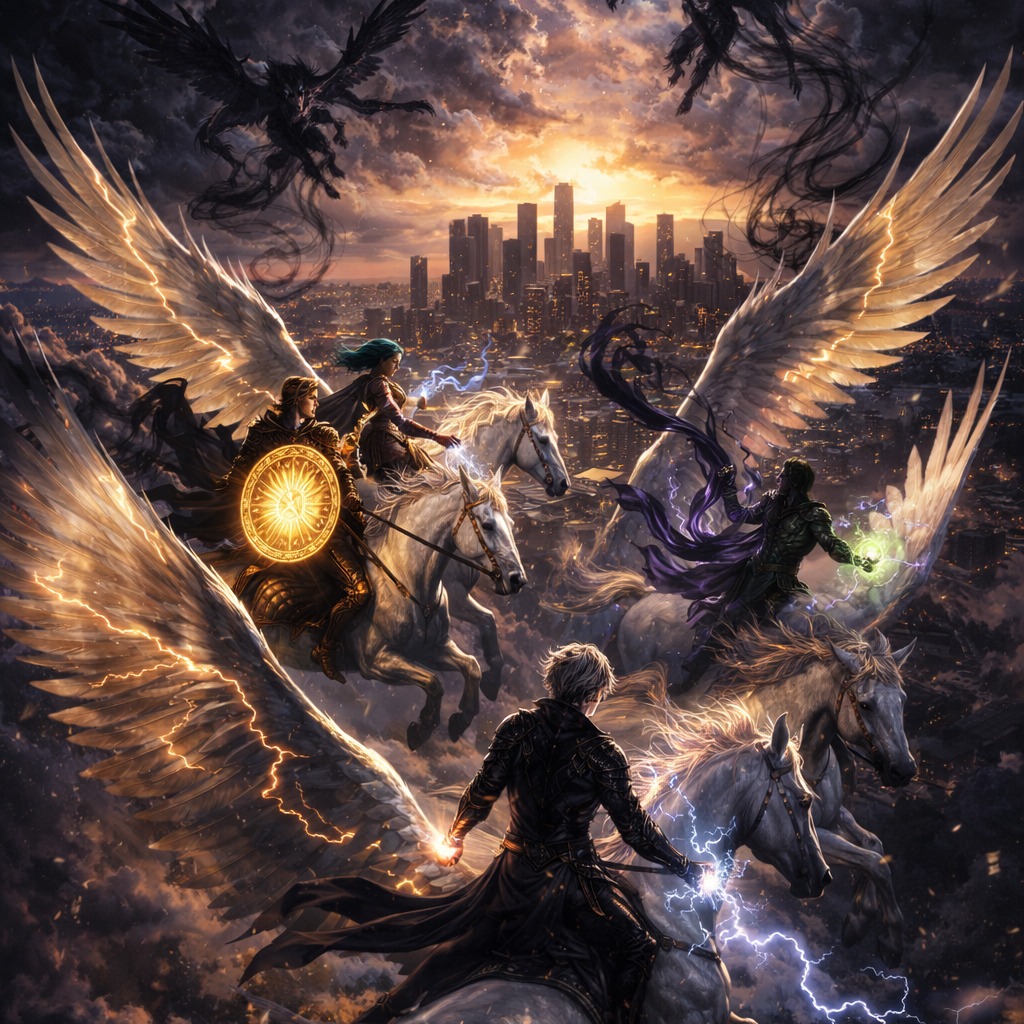 Fast, high-energy power metal with soaring clean male vocals, massive layered choirs, dual harmony lead guitars, galloping double-kick drums, triumphant yet tense minor key melodies, cinematic orchestral swells, dramatic pre-chorus build-ups, explosive stadium-sized chorus, ultra fast neoclassical shredding guitar solo, key change in final chorus, epic and heroic but with a sense of looming danger, ultra-polished production, catchy hook-driven songwriting, epic arpeggios, cinematic, 3D audio