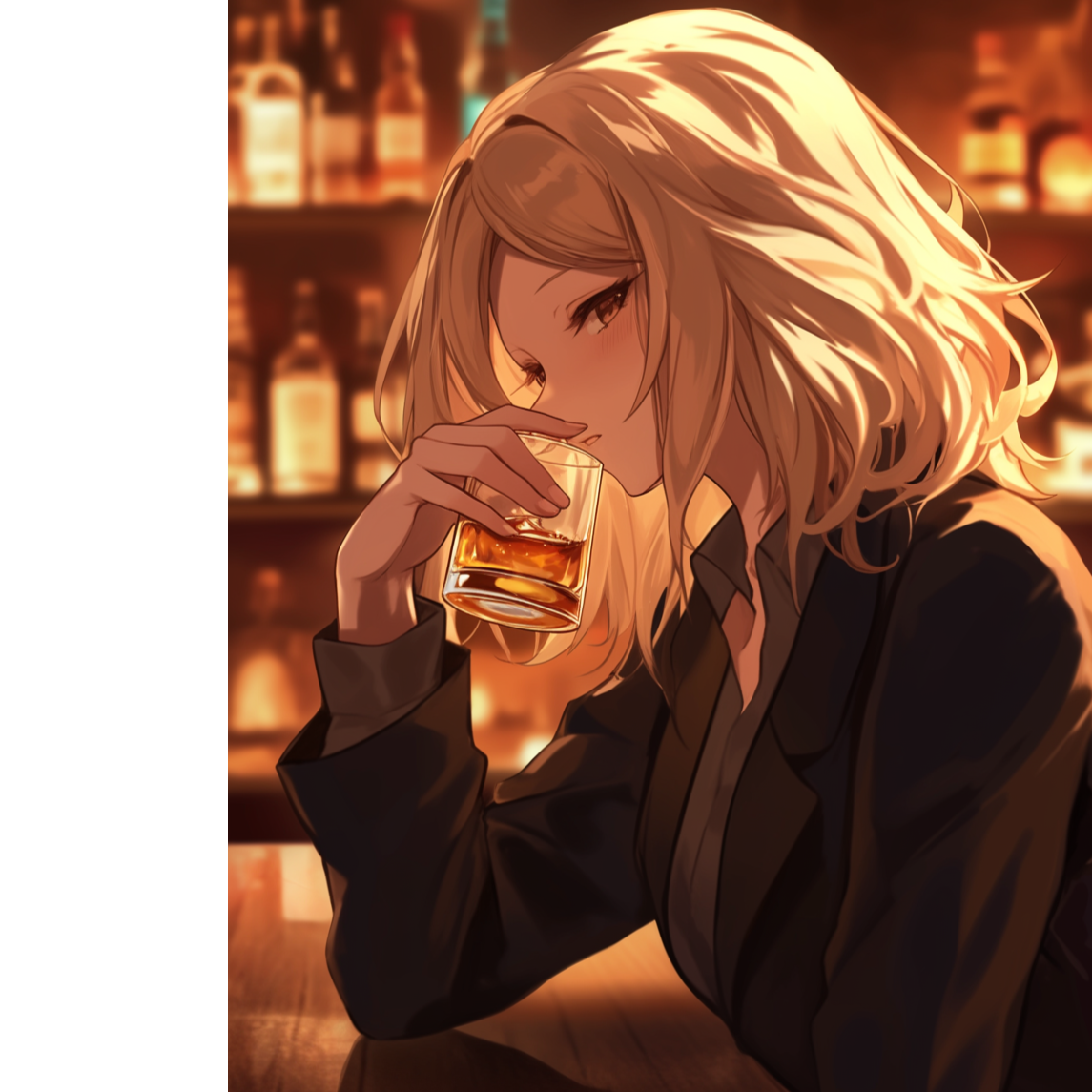 Mood: Playful, cheeky, smoky bar atmosphere, humorous and self-deprecating