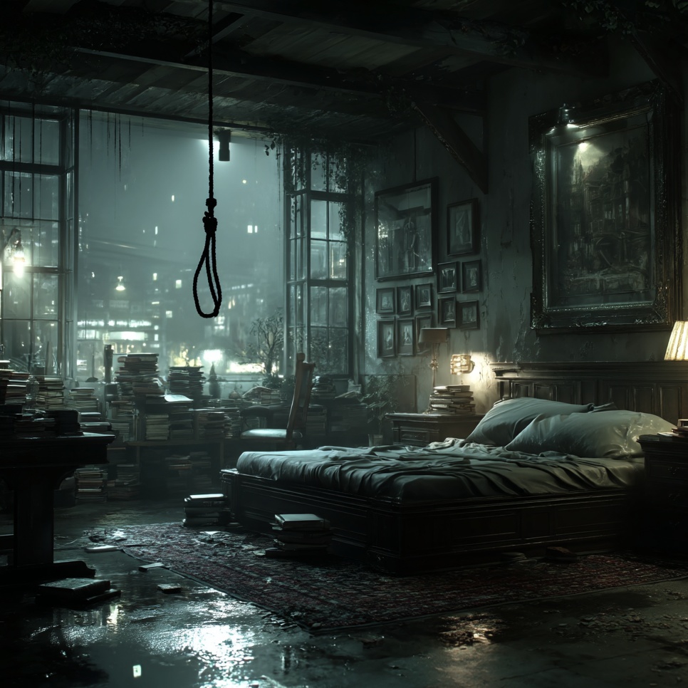 Dark, emotional country-folk ballad with moody acoustic guitar, ambient electric swells, soft piano, and subtle string pads, Slow tempo, sparse percussion, and a warm, gritty male vocal with aching delivery, Builds slowly with emotional intensity, Reflective, intimate, and haunted—perfect for storytelling, Tone is tragic but beautiful, with raw vulnerability