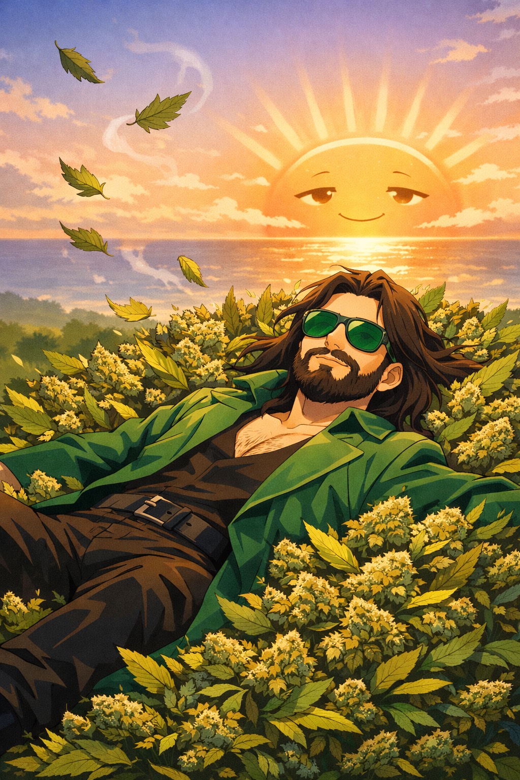 lo-fi hip hop, psychedelic chill, stoner rap, dreamwave, fantasy hop, surreal alt-pop / nostalgic haze, sidequest energy, male vocals, glitchy forest, retro game drift, lazy hero blues, pixelated melancholy / dusty vinyl crackle, tape-warped flute, analog synth bloom, slowed fairy chimes, mossy drum loops, smoked-out ocarina echoes, dream pop, surreal folk