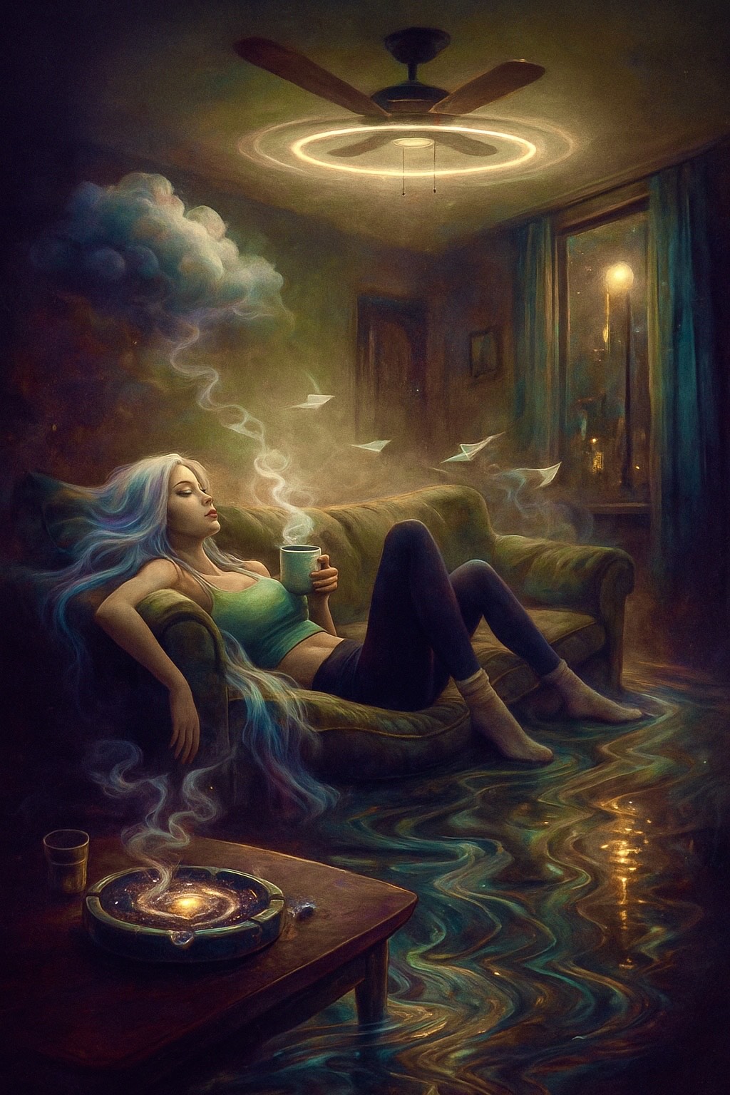 dream pop, hazy psychedelic pop, stoner chill, surreal lounge, lo-fi indie, soft psych, warm analog, mellow groove, female vocal lead, reverb-soaked atmosphere, cozy night-time vibe, floating drums and bass, smoke-filled living room mood, intimate, soft-focus textures, gentle head-nod tempo, subtle tape wobble, ‑high energy club banger, ‑festival EDM, ‑big room house, ‑aggressive rock, ‑hype trap banger, ‑hyperpop glitch, ‑comedy/parody tone, ‑anthemic stadium pop