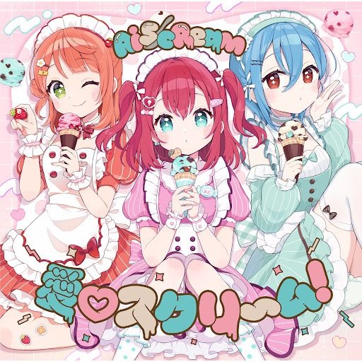 J-pop, Cute, 3 Girls, Idol Pop, Kawaii Future Bass, Bubblegum Pop, Anisong, Cute-core, High-pitched layered vocals, Japanesse Voices/Tones, Bright, summery visuals, Ice cream/sweets metaphor