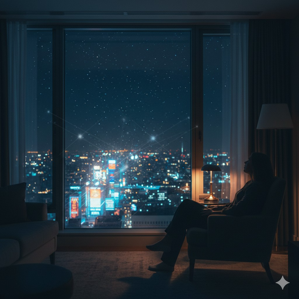 male vocal, 1980s UK synth pop ballad, 26s male vocal, walking tempo, DX7 electric piano main chords, bright FM synth bells, Roland Juno-60 analog pad, Jupiter-8 synth strings, LinnDrum machine groove (snare reverb, hi-hat pattern), synth bass with warm sustain, romantic and bittersweet, holiday atmosphere, polished 1980s studio sound, no guitar, no distortion