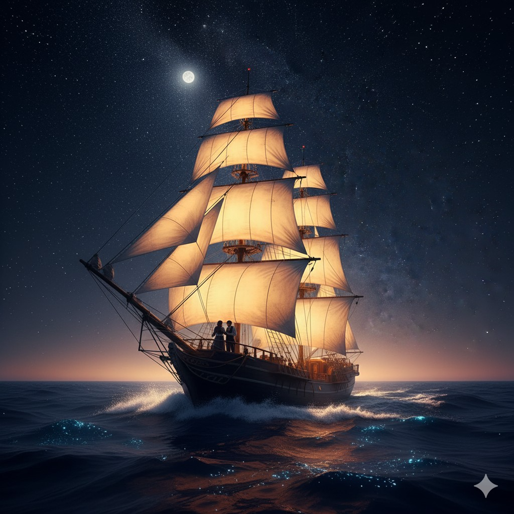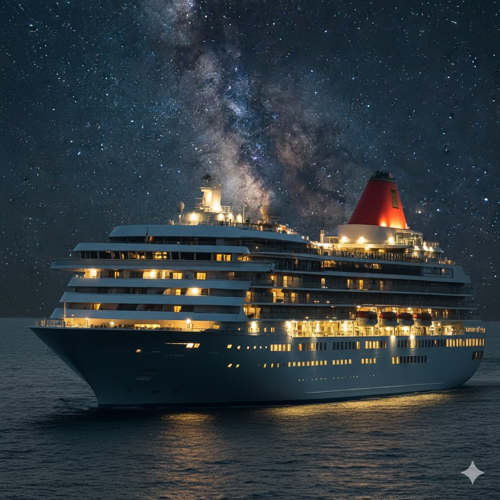 male vocal, no chorus, no choir, only orchestral instruments, many types of musical instruments round chant style in orchestral, large luxury cruise ship with big sea and big sky, melodic, warm gentle, cinematic, walking tempo, no chorus, no choir