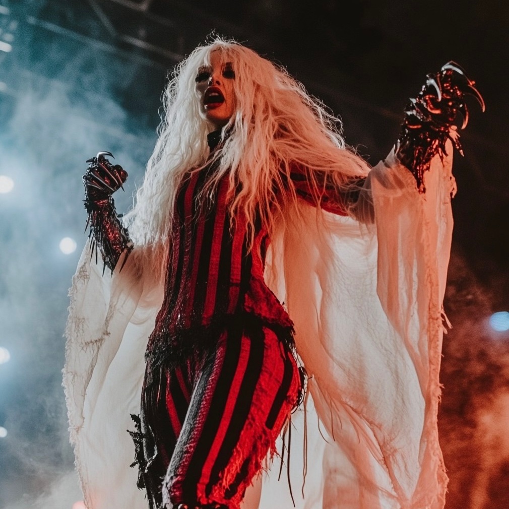 Nu-metal, Dark, heavy bass/guitar riffs, EDM elements, eerie synths, whispered/screamed female vocals, horror vibe