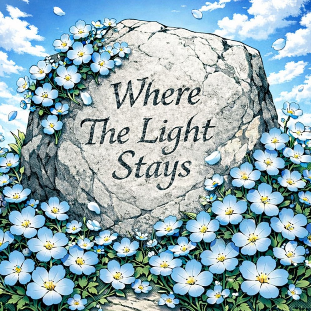 Soft, warm vocals glide over clean electric guitar arpeggios and restrained drums, embracing a Japanese rock sound, Verses use delicate piano accents; choruses expand with bright distortion and melodic bass, Subtle synth pads add lift, while a vibrant bridge introduces dual guitar harmonies, Mastering target loudness around –9 LUFS with balanced EQ and slight high end sheen for clarity