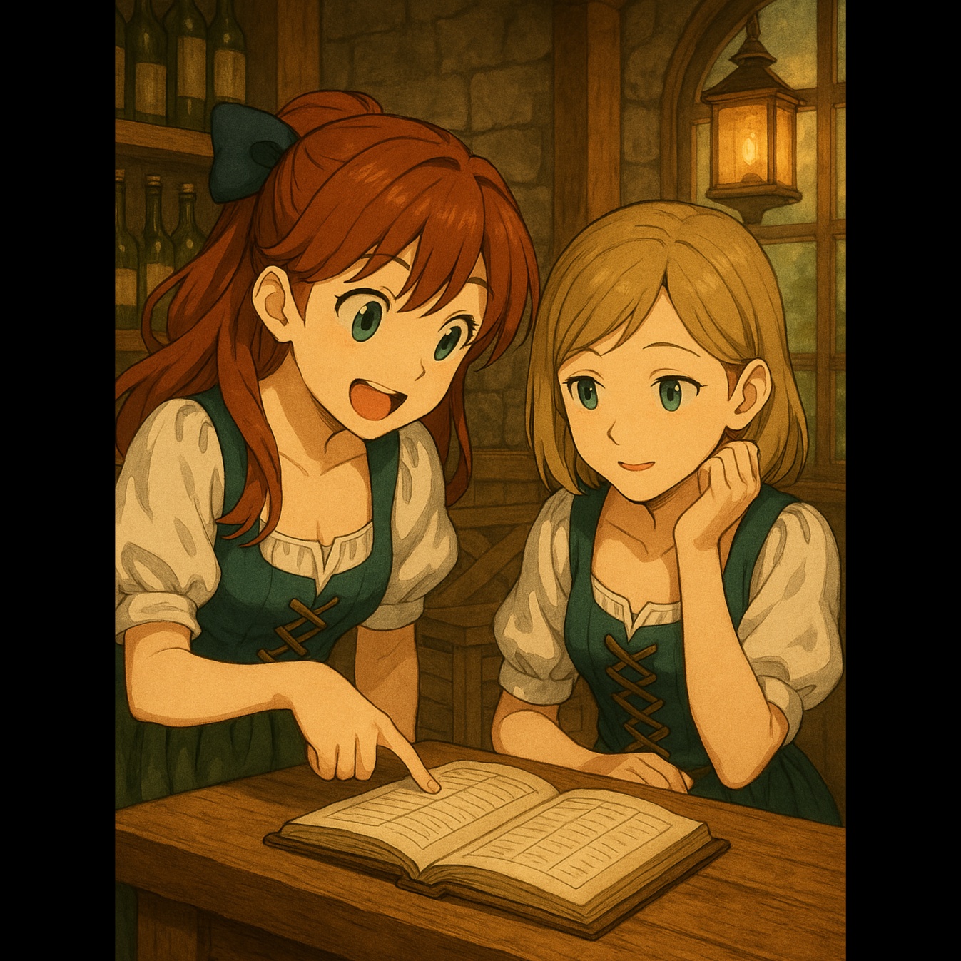 Cheerful anime-style female duet, one lively and sharp, one gentle and dreamy, with expressive phrasing