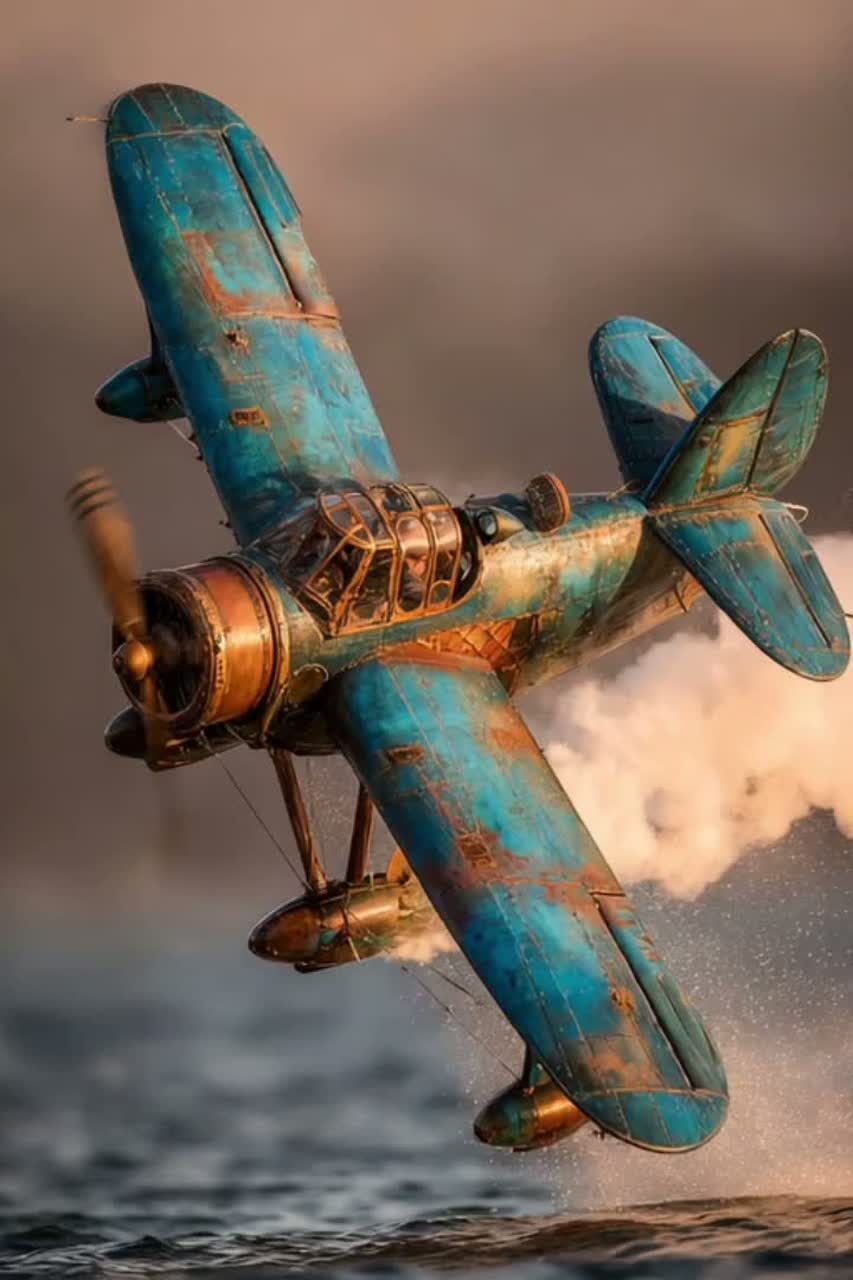 Action musical scene, The Mariner, Helen, and Enola are attacked by a Smoker seaplane, Cinematic orchestral-rock score with tribal drums, brass, and rhythmic aerial percussion, Alternating between manic pirate-style chants (Smokers) and intense sung exchanges from the trio, Fast-paced, tense, and heroic with a climactic harpoon strike and quiet aftermath, Sound / Instrumentation: