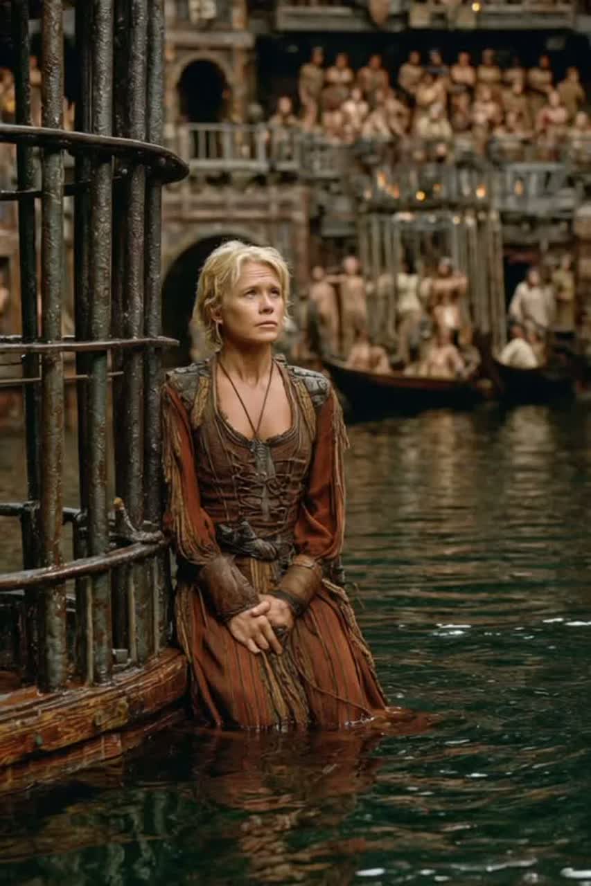 A dark, emotional musical theater duet, Scene: The Mariner is imprisoned in an underwater cage, Helen visits him, torn between fear and compassion, Subtle hints of a hidden spy listening nearby, Sparse orchestration with strings, ambient ocean sounds, dripping water, and low percussion, Male and female vocals with shadow chorus, Tone: tense, intimate, mysterious, tragic, with faint undercurrents of hope, Sound / Instrumentation: